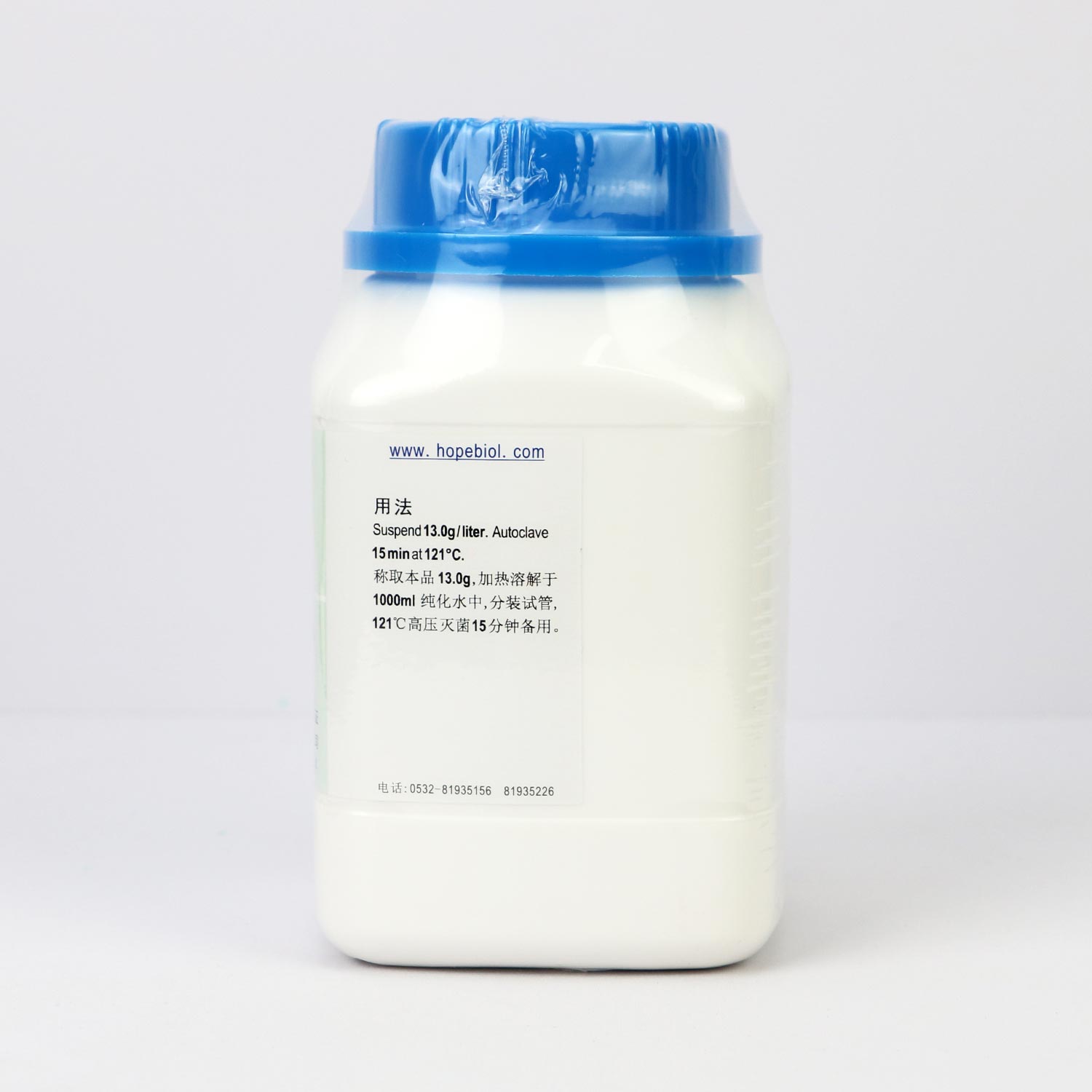 称取本品13.0g,加热溶解于1000ml纯化水中,分装试管,121℃高压 灭菌15分钟,备用。