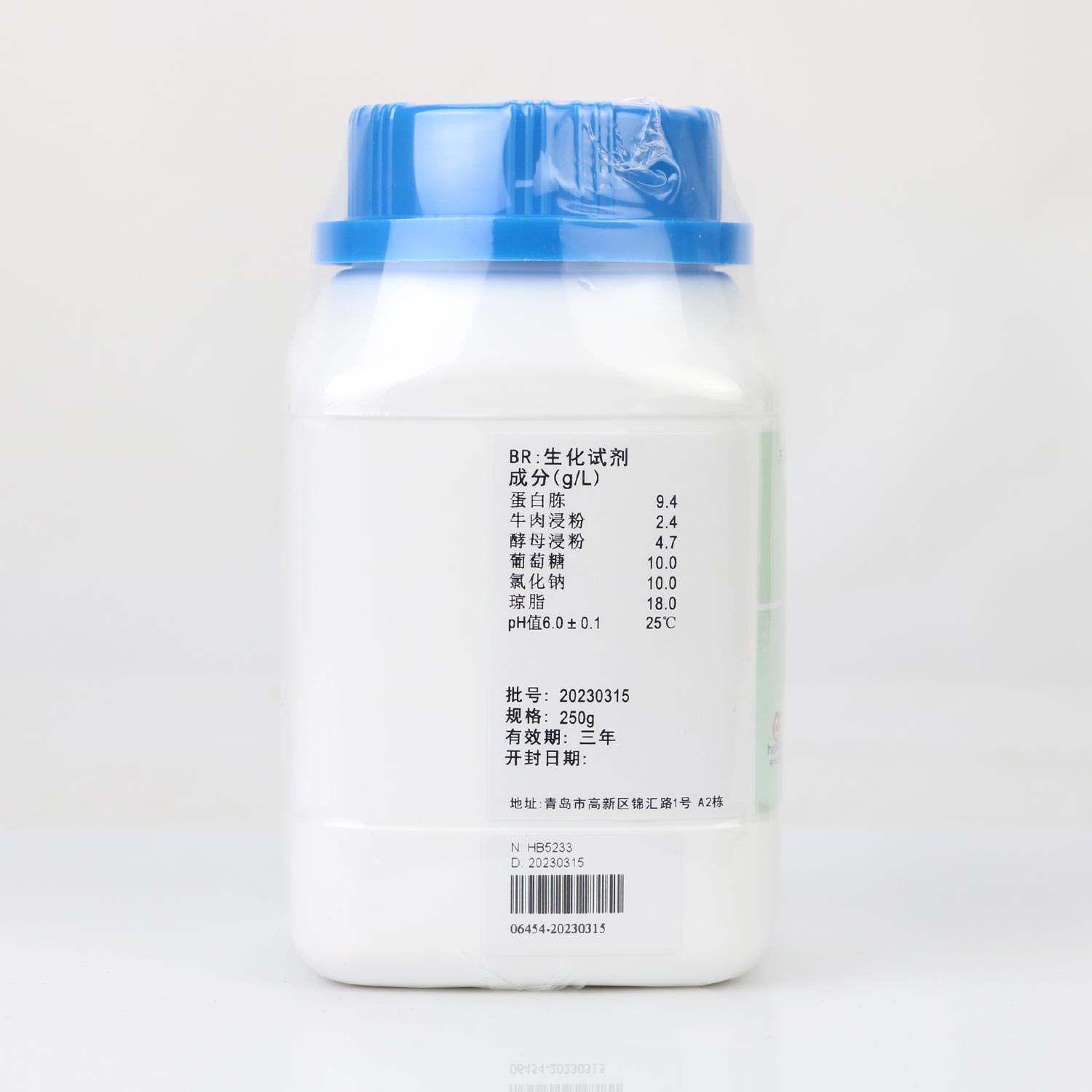 蛋白胨 9.4 牛肉浸粉 2.4 酵母浸粉 4.7 葡萄糖 10.0 氯化钠 10.0 琼脂 18.0 pH值6.0±0.1 25℃