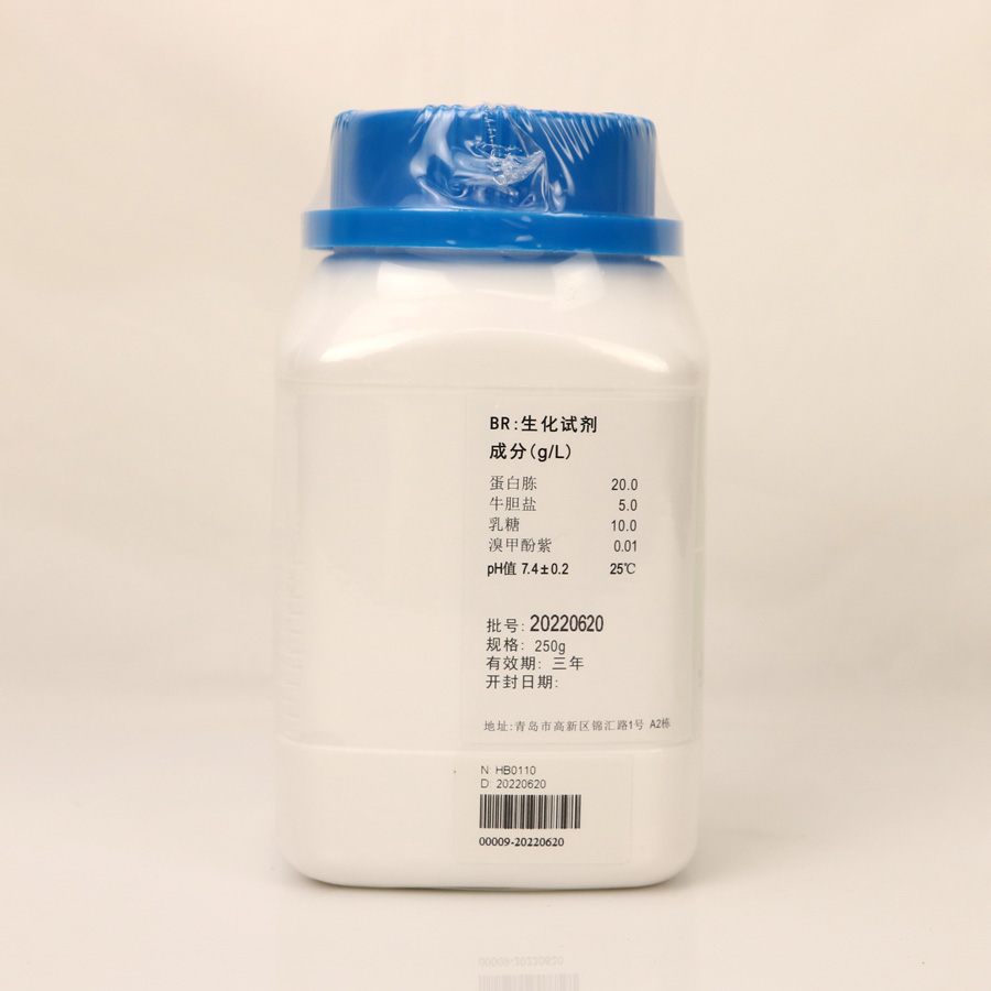 蛋白胨 20.0 牛胆盐 5.0 乳糖 10.0 溴甲酚紫 0.01 PH值7.4±0.2 25℃