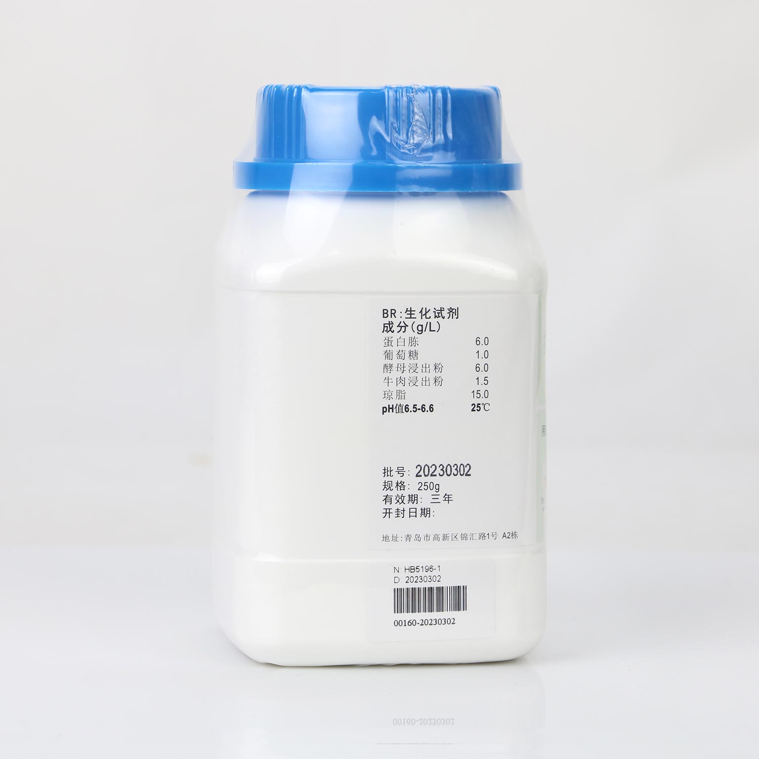 蛋白胨 6.0 葡萄糖 1.0 酵母浸出粉 6.0 牛肉浸出粉 1.5 琼脂 15.0 pH值6.5-6.6 25℃