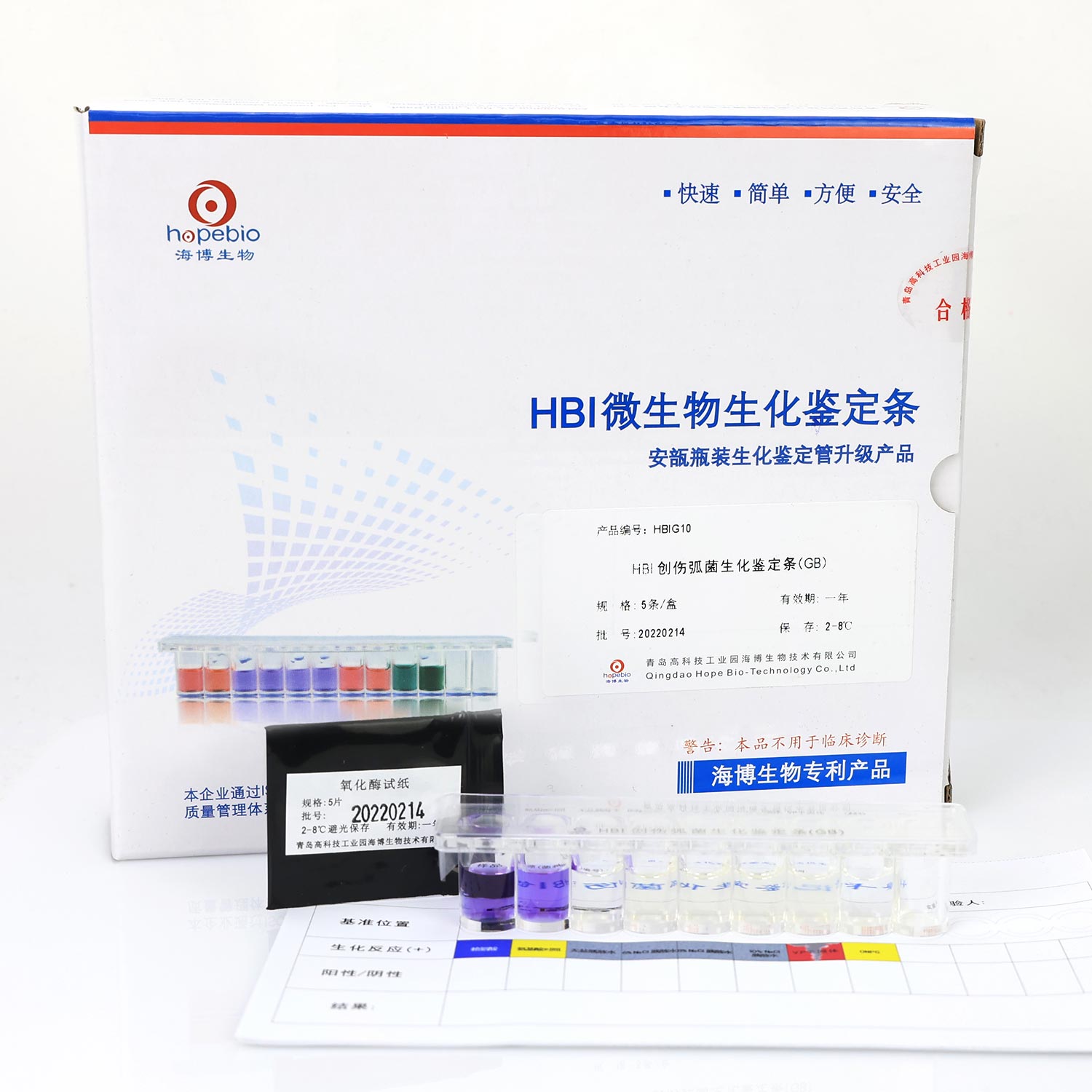 每盒鉴定条需配套1盒 HB8281 V-P试剂盒和1盒 GS070 无菌液体石蜡使用。