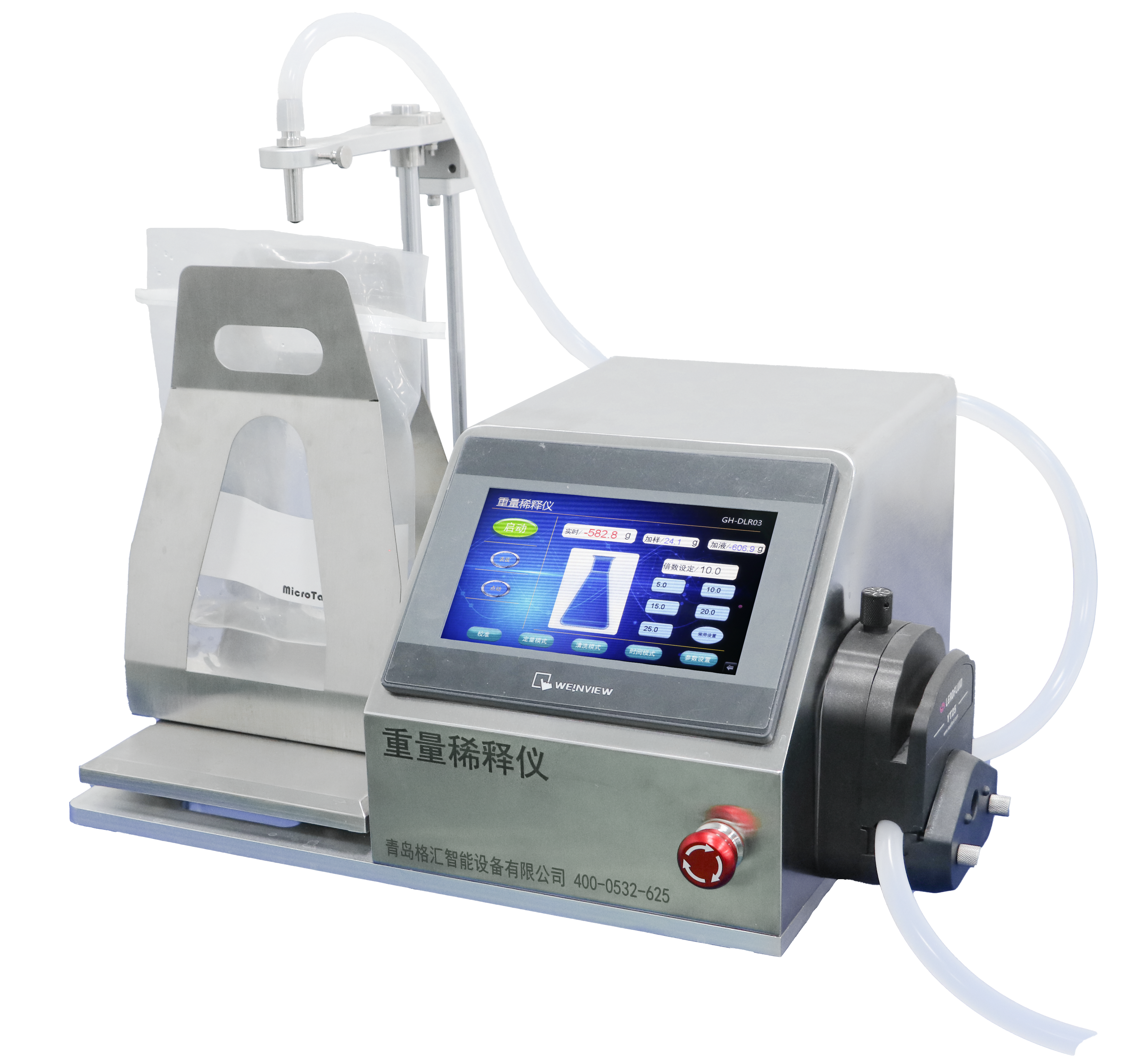 GH-ZLR01重量稀释仪是一种配备高精度蠕动泵和称重传感器的批量分液仪器,能够快速、精准的完成样品稀释操作。具有重量稀释功能、定量分装功能、手持分装功能、清洗功能四种功能。