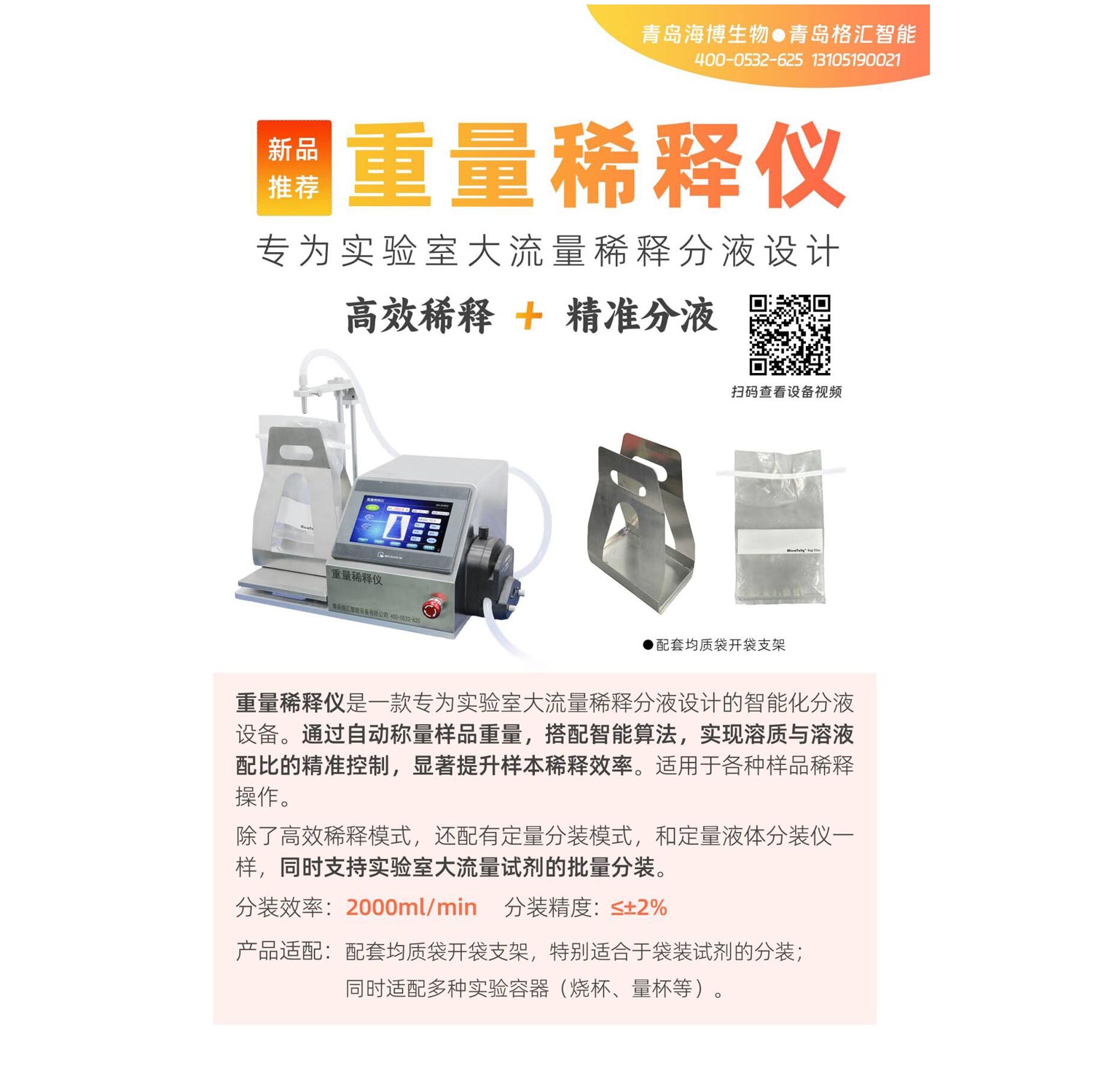 分装范围覆盖20-4000ml,满足多样化实验室需求。