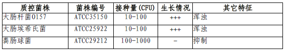 按标签用法制备培养基,接种以下质控菌株,放置41.5±0.5℃需氧培养18-24小时。