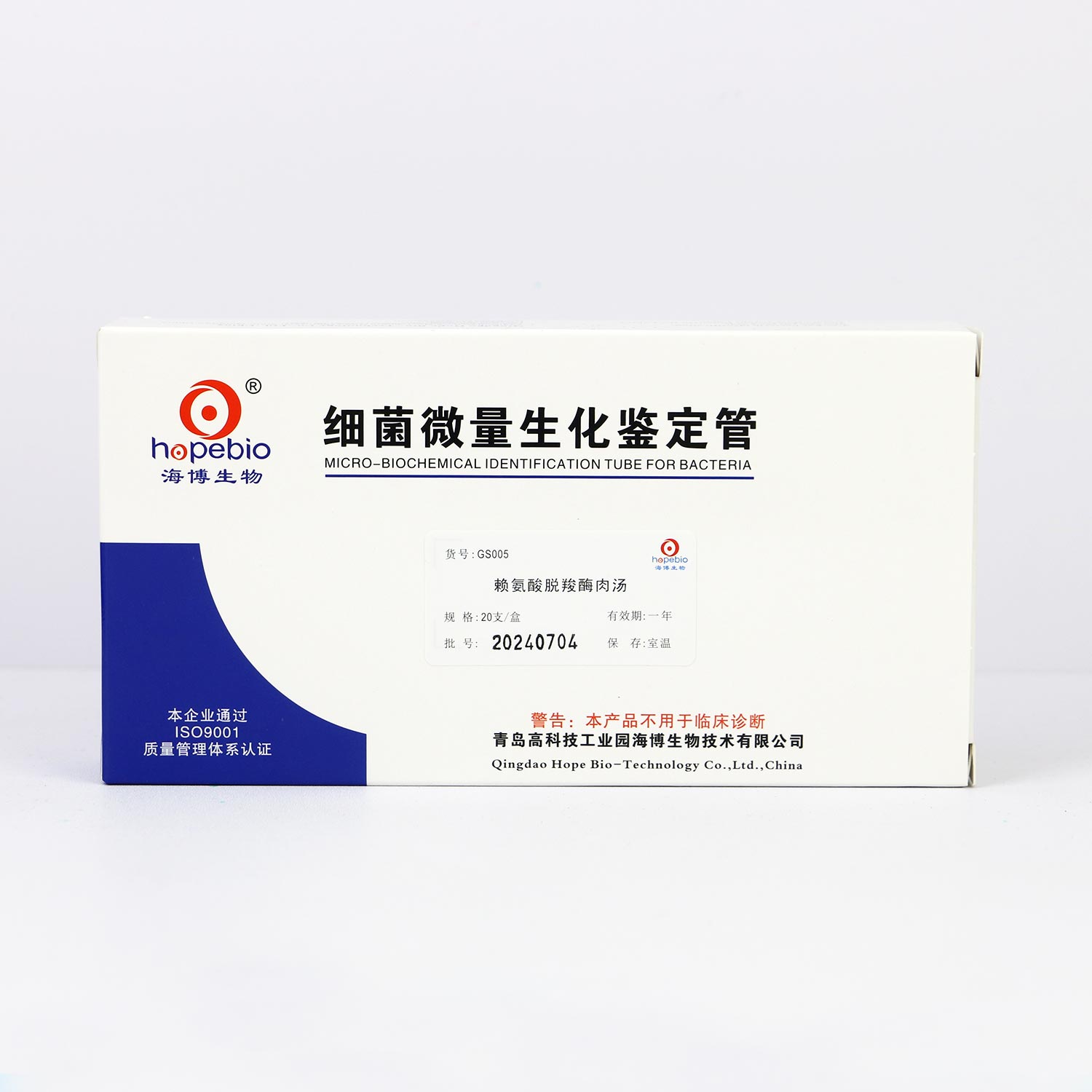 20支/盒 用于细菌的赖氨酸脱羧酶实验