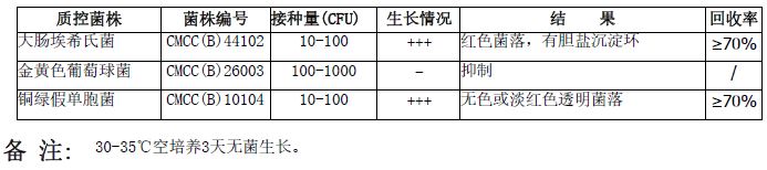 紫红胆盐葡萄糖琼脂培养基(袋装即用型)(500ml)(药典)微生物灵敏度试验: