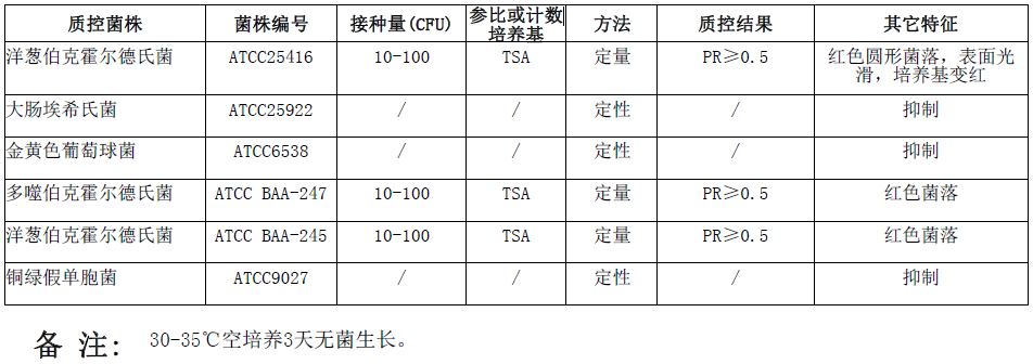 洋葱伯克霍尔德菌选择性琼脂(BCSA)(USP标准)(袋装即用型)微生物灵敏度试验: